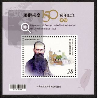 2022 150th Anniv of George Leslie Mackay Arrival in Taiwan Stamp Souvenir Sheet (s/s). Formosa(Taiwan), Rep of China.