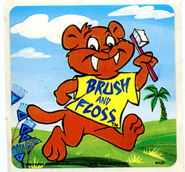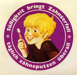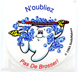 Un auto-collant a été repris ultérieurement par la Fondation Belge pour la Santé Dentaire & Belgische Stichting voor Gezonde Tanden