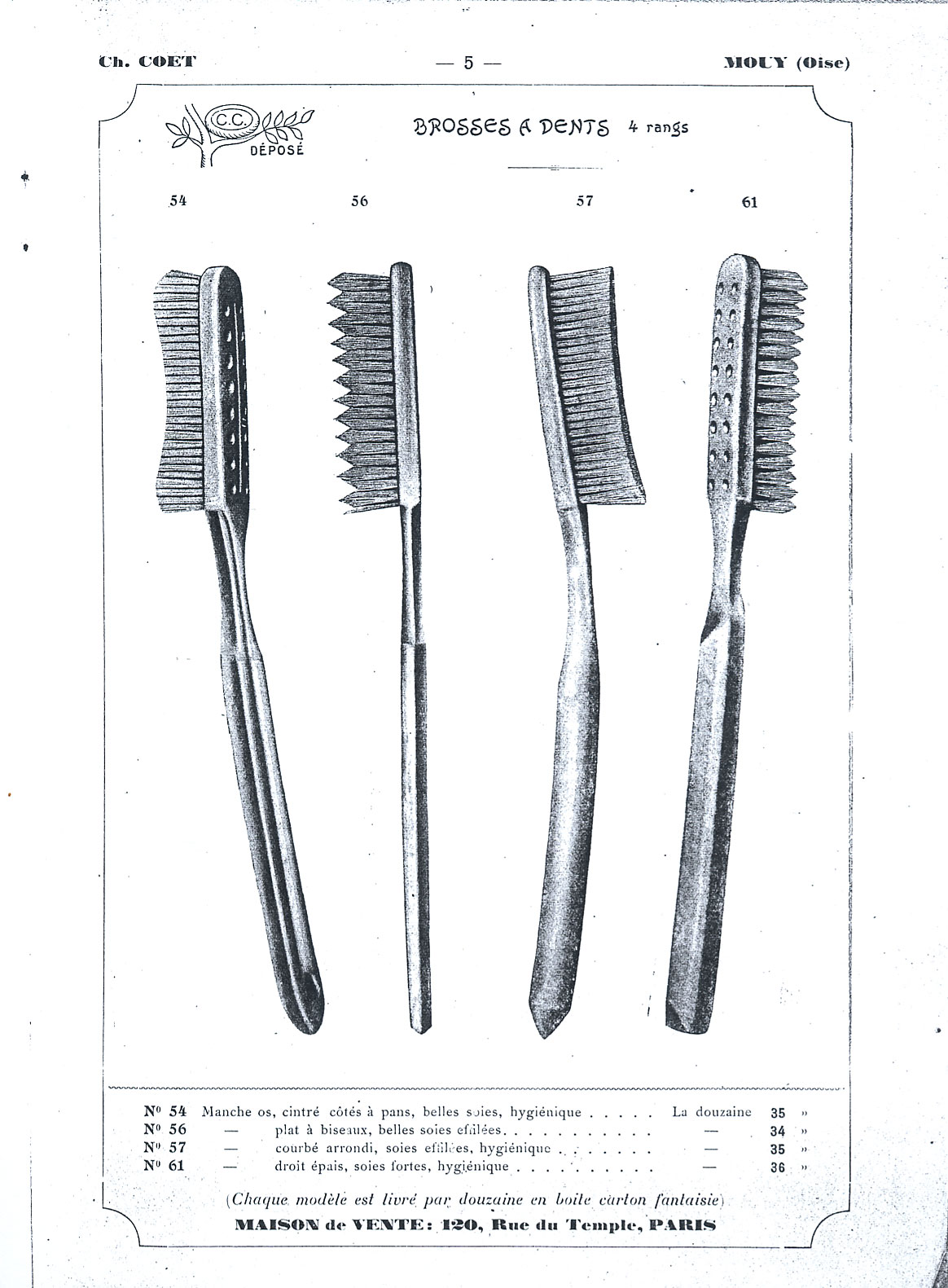 Si la brosse à cheveux existe depuis plusieurs siècles et s'est installée à Tracy-le-Mont en 1846, la brosse à dents est née dans l'Oise à la fin du XVIIie siècle dans le triangle formé par Beauvais, Méru et Noailles, et cela,quelques années après les premières productions réalisées en Angleterre.