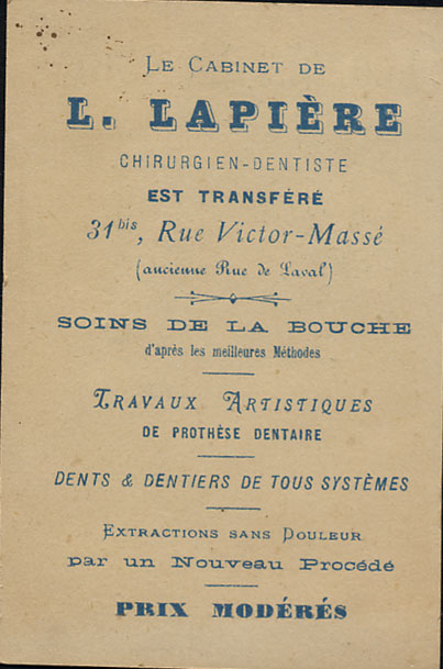 Chirurgien-Dentiste, Léopold LAPIERE.