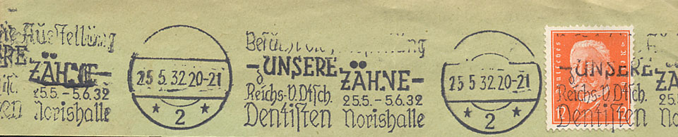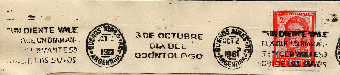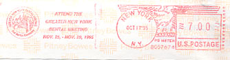 Top strip with meter slogan used by the Dental Society of the State of New York showing a baby, a child and an adult, all smiling.