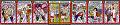 des personnages vêtus de violet, coiffés d'un chapeau melon, figures
