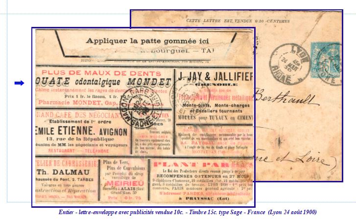France - Semeuse n° 235 (1927-1931) Publicité privée imprimée sur la vignette centrale vierge entre les deux blocs de 50 timbres d'une feuille de 100 timbres au type IIIB |