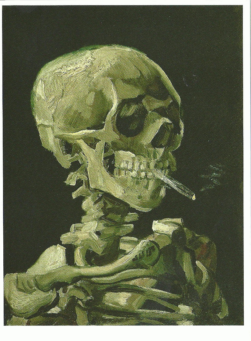 Ce squelette avec une cigarette allumée dans la bouche est une blague juvénile.