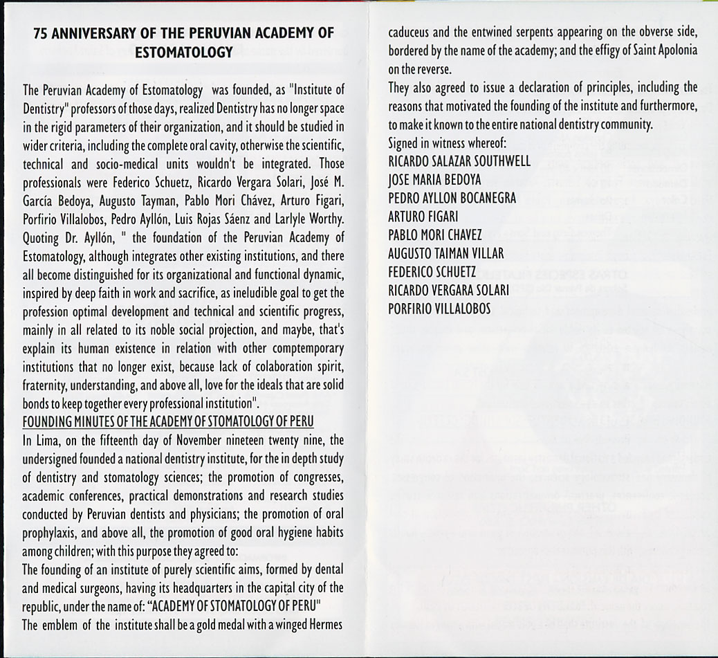 Timbre édité à l'occasion du 75e Anniversaire de l'Académie de Stomatologie du Pérou.