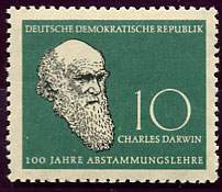 * 349 - 10 p : Charles Darwin, centenaire de sa découverte des origines de l'espèce humaine - vert et noir