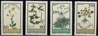 Série de 4 valeurs : 1057 - 1060 Arnica montana - Urtica dioica - Valeriana oficinalis - Ranunculus ficaria