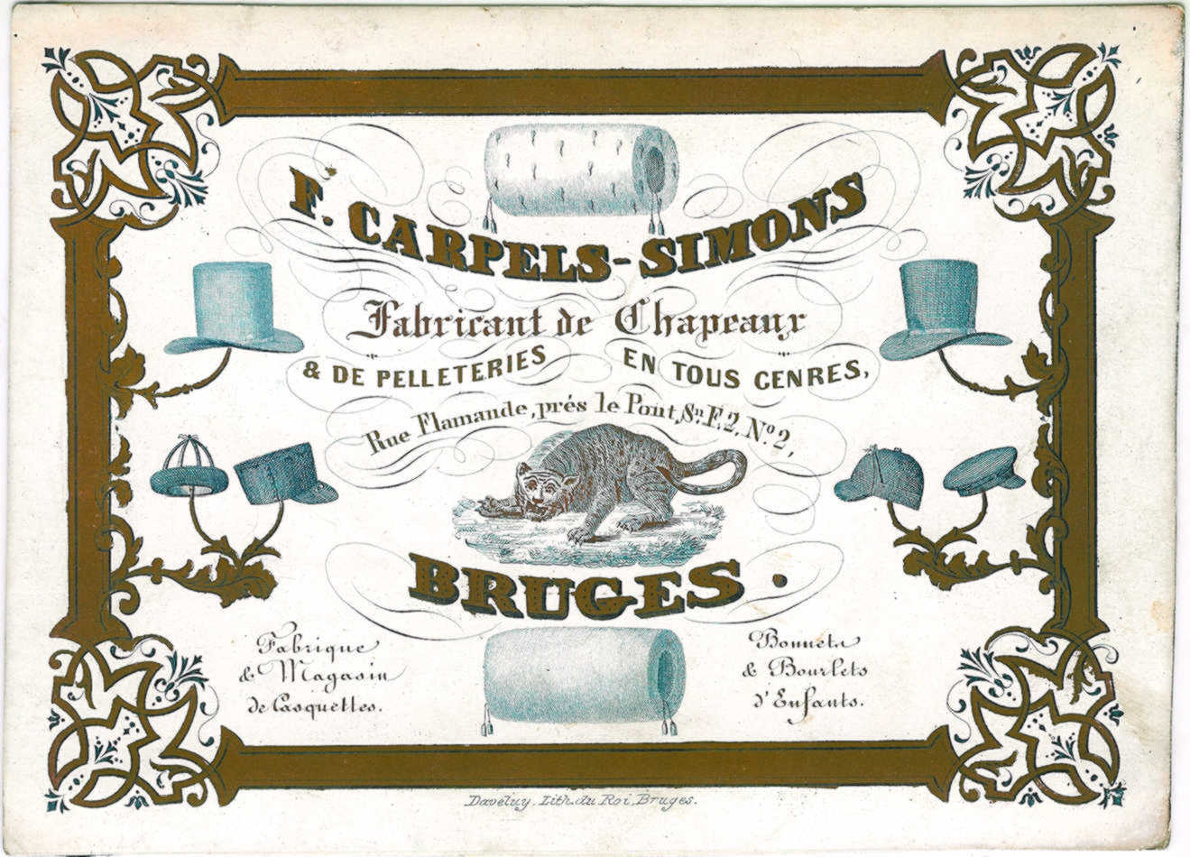superb hat-maker's card, printed by Daveluy in Bruges.