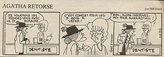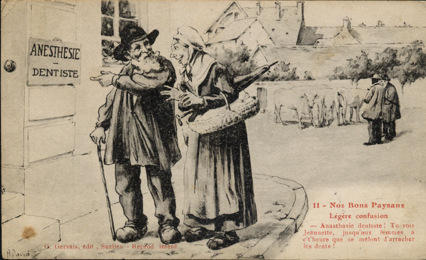 -Anasthasie dentiste ! Tu vois Jeannette, jusqu'aux femmes à c't'heure que se mêlent d'arracher les dents !