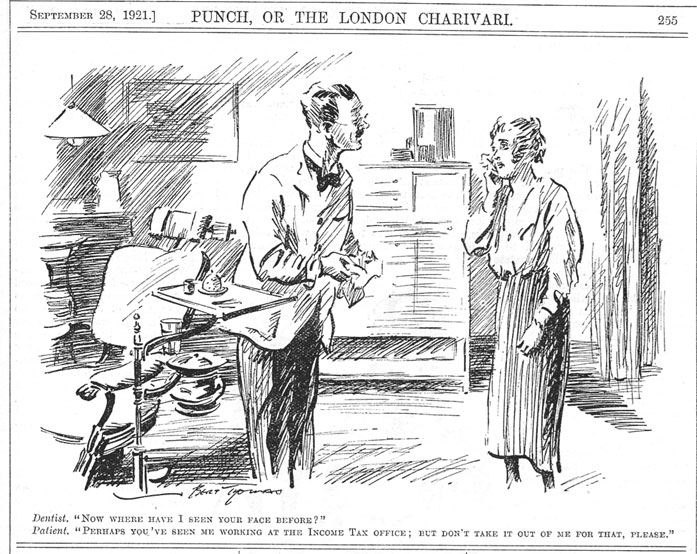 Patient "What - half-a-crown for pulling out a tooth ! Why, I have to work over an hour for that"