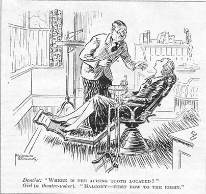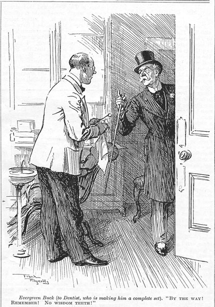 Evergréen Buck (to Dentist, who is making him a complété set) "By the way ! Remember ! No wisdom téeth !"