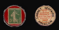 un couvercle translucide (mica) sous lequel le timbre était glissé.