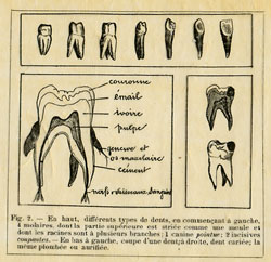 à gauche, coupe d'une dent (molaire)